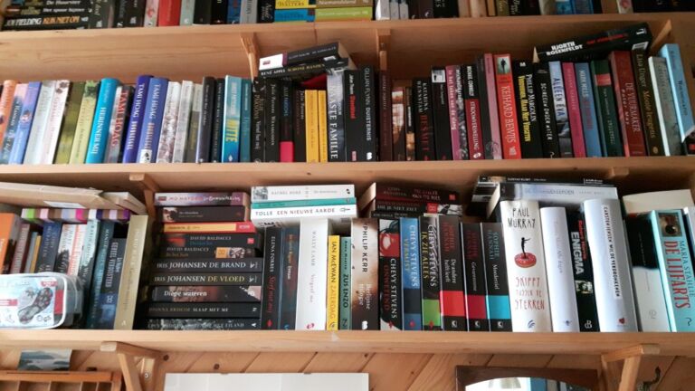 En de foto’s van al je boekenplanken vind ik ook erg leuk om te zien. Nu vroeg ik me nog wel af of je de timmerman echt nooit meer hebt weten te verleiden om nog een allerlaatste boekenplankje voor je te timmeren. 😉