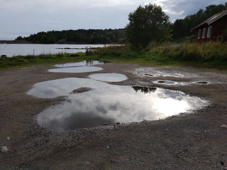 Met prachtige luchten er boven die zich ook weerspiegelen in de grote plassen – je ziet nauwelijks waar de zee ophoudt en de vaste wal begint.