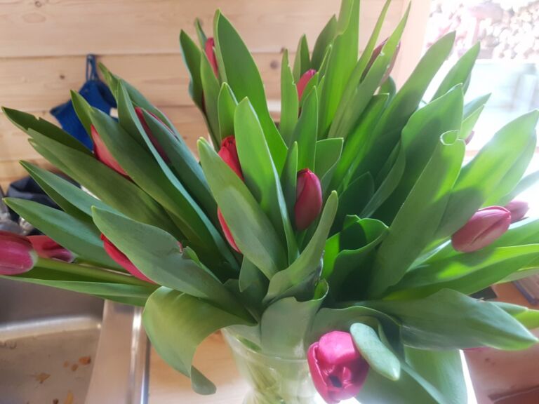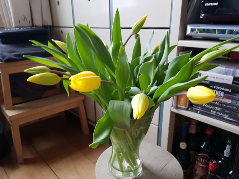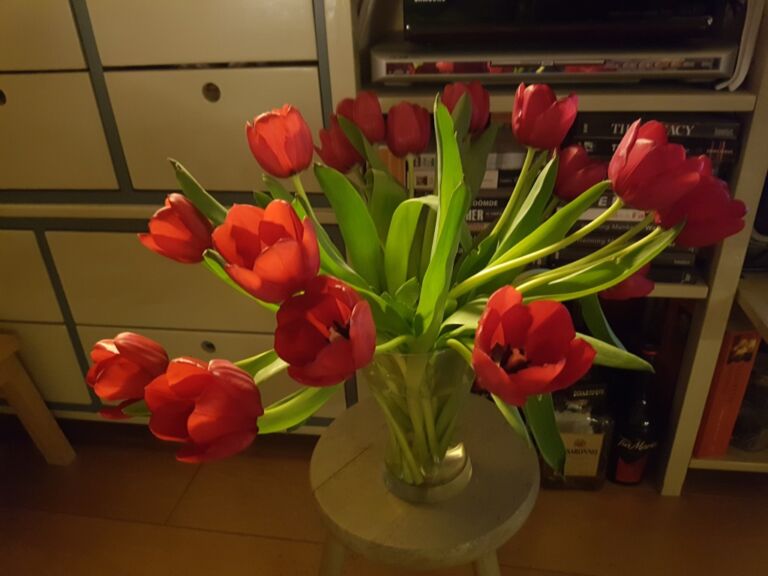 Triest voor de bollenboeren die ze nu niet kwijt kunnen maar eerlijk is eerlijk, fijn voor de klanten van De Streekboer want ik koop nu iedere week vijf bossen en breng ze ook bij de buren die altijd voor me klaar staan.