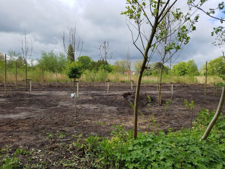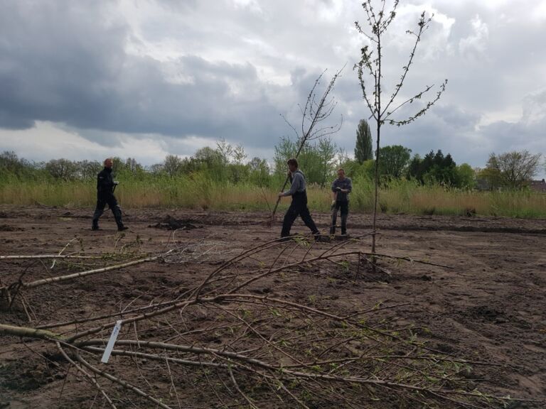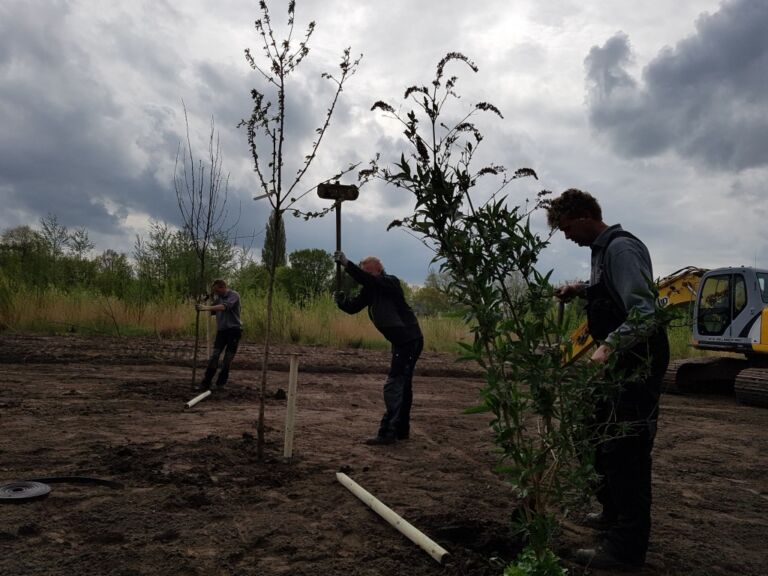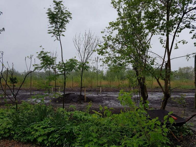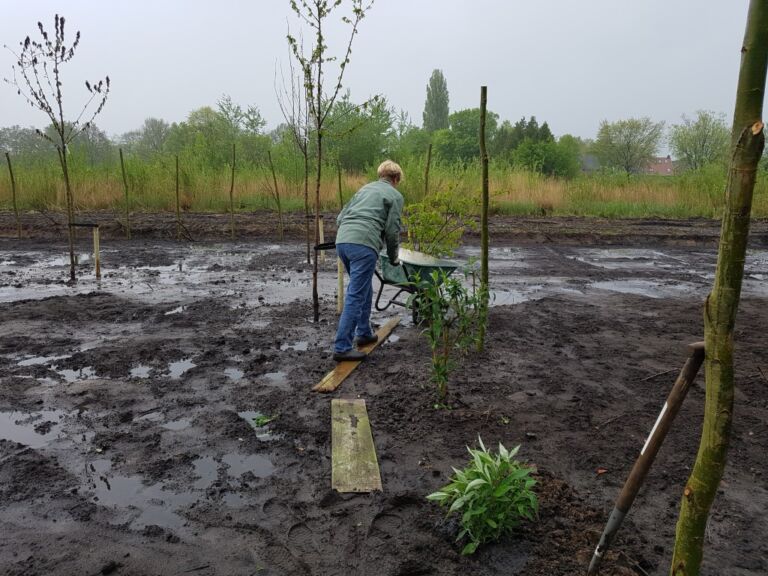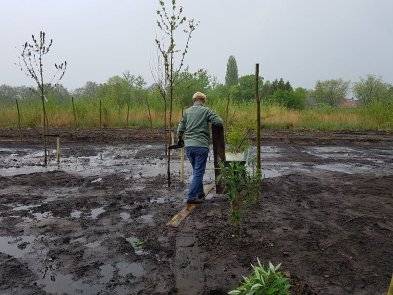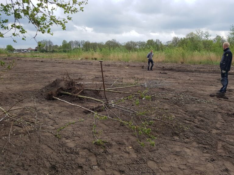 Het terrein was best nat omdat de oude sloot was dichtgegooid.