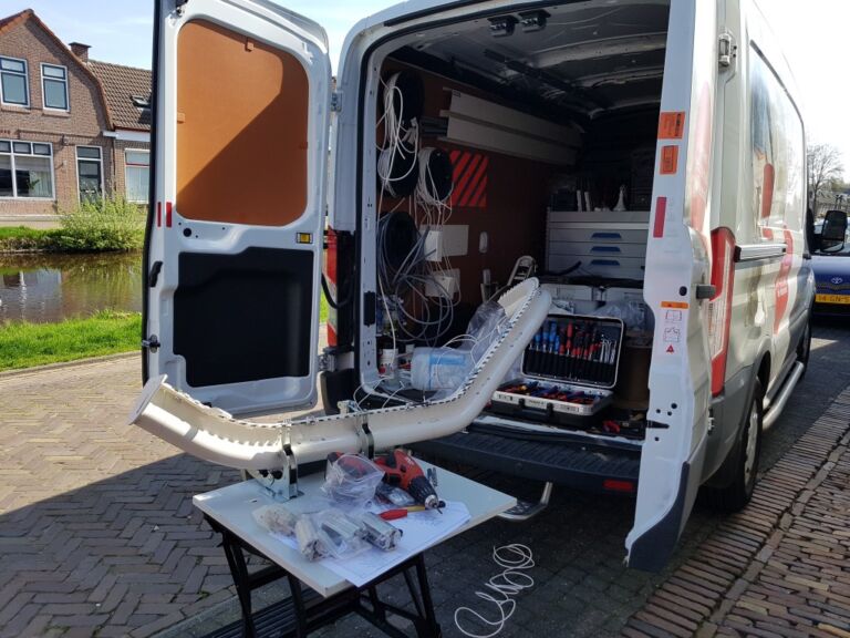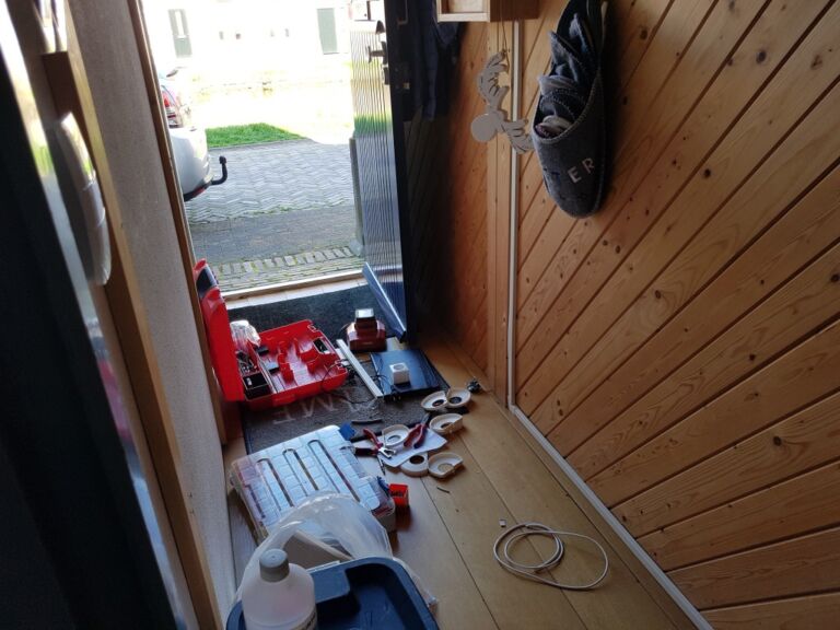 Gelukkig trof ik een kanjer van een monteur. Op de warmste dag van april arriveerde hij om tien uur uit Lekkerkerk (!), trok zijn korte broek aan en begon buiten voor de deur (want ja, de gang was te smal) alles uit te zoeken en te monteren. Hij at en dronk tussen het monteren door, verzette een lichtschakelaar, legde de leiding voor de lift aan en was eindeloos, echt eindeloos bezig met het programmeren van het stoeltje.