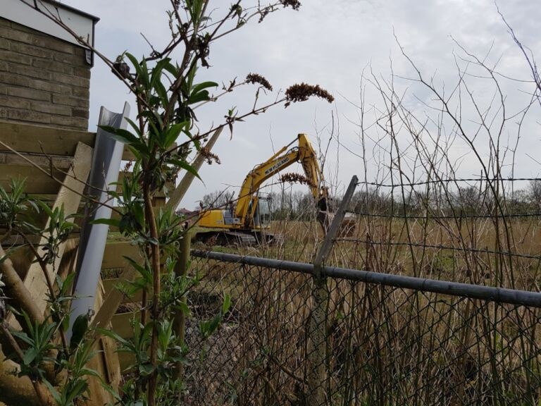 Als eerste werd er een diepe brede sloot gegraven achter het nieuwe stuk.