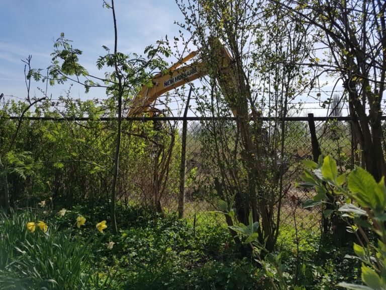 Toen werd het grote hek dat nog van de timmerfabriek was en er al zeker 60 jaar stond eruit getrokken, samen met de bomen die er door heen gegroeid waren. Dat was even slikken.