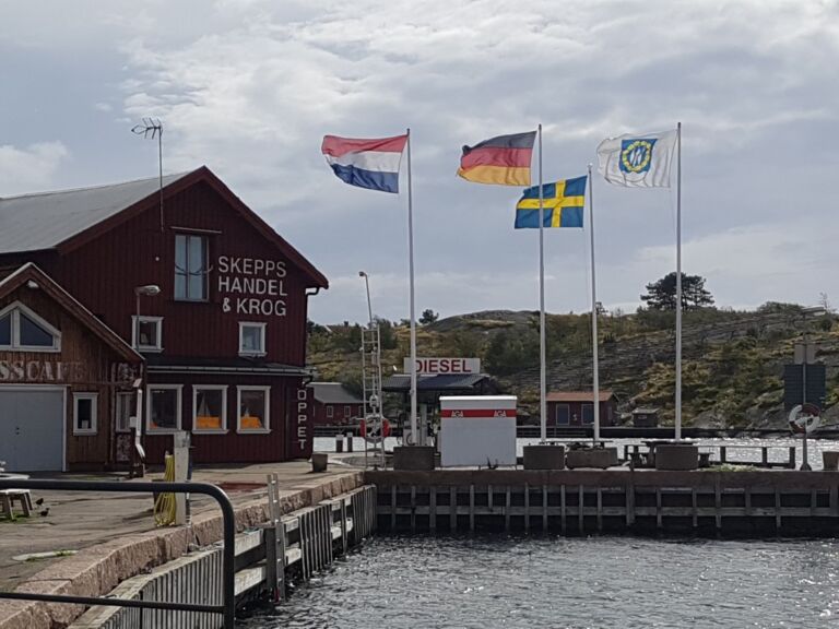 In Mollosund bleek alles gesloten, ik had het kunnen weten want het seizoen is voorbij en dan is het hier echt overal ‘stängt’. Maar in de jachthaven wapperde de Nederlandse vlag dus ik was niet de enige bezoeker!