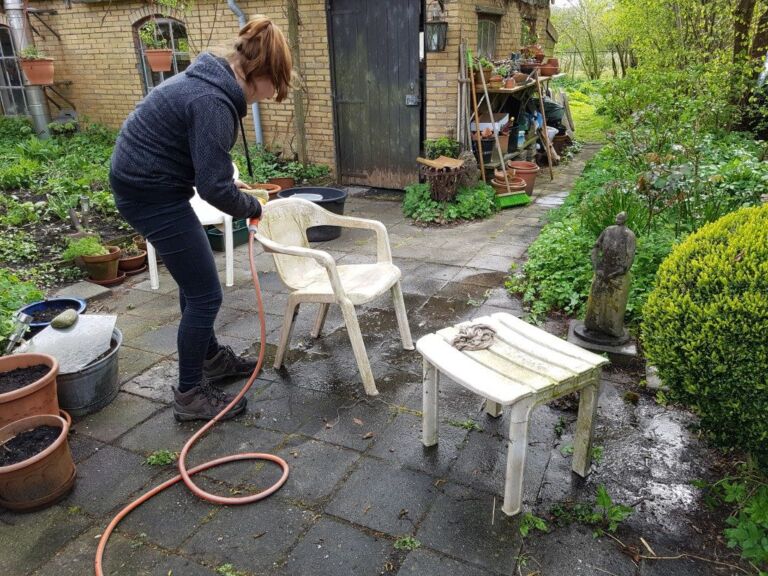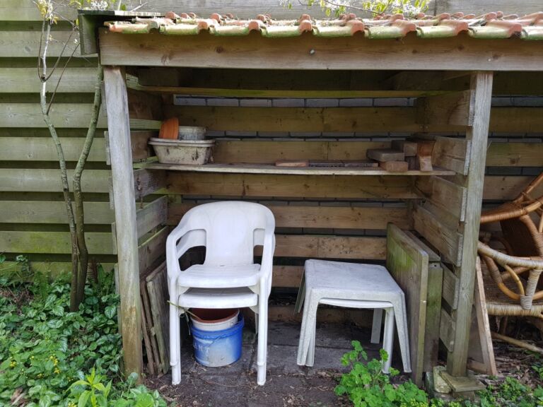 Met Pasen hagelde het en was er een snijdende ijskoude wind. En dat terwijl ik de bon ‘verzilverde’ die ik van Machteld voor mijn verjaardag kreeg en die goed was voor een klus in de tuin. Heerlijk want nu heb ik een opgeruimd hok met twee schone tuinstoelen en heel veel ruimte voor potten, bakken, gieters en teilen. Ze heeft keihard gewerkt ondanks de spinnen die uit hun winterberging kropen…