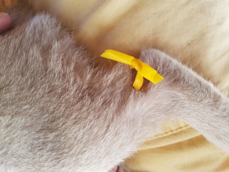 Maandag hadden we weer een afspraak en de hele zondag was het wondje brandschoon dus de drain mocht eruit! Zalf mee voor een vlotte genezing en naar huis!