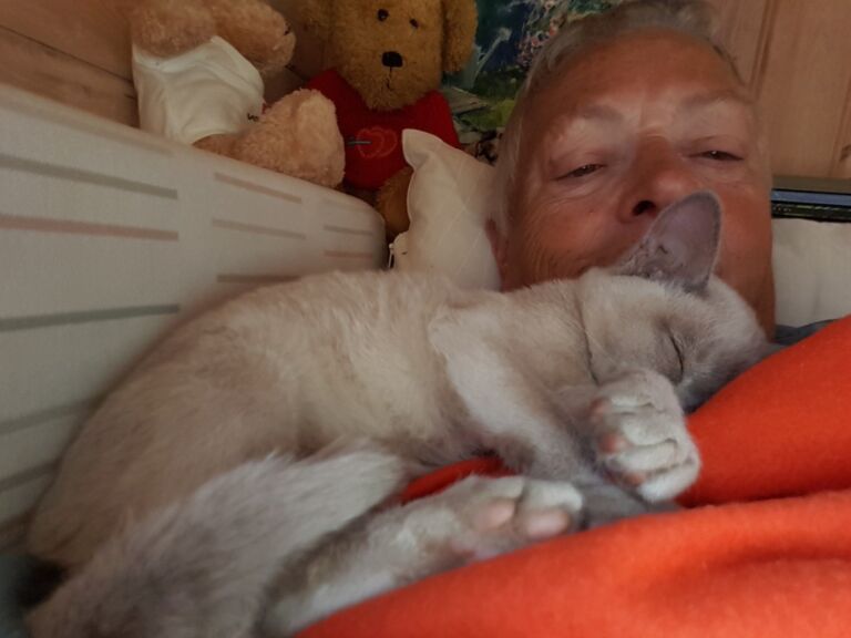 Ze hebben samen spinnend liggen slapen maar ook achter elkaar door het huis gerend, Pepijn met stralende ogen, ik heb hem sinds de dood van Petter niet meer zo gezien!