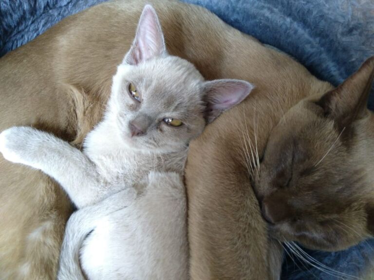Het spoelen viel me alles mee, vooral omdat hij zo makkelijk is. Dat geldt ook voor het kapje, het maakt hem nauwelijks uit of hij met of zonder in de hoge krabpaal klimt! En pilletjes slikken is bij geen enkele Burmees lastig dus we redden ons best.