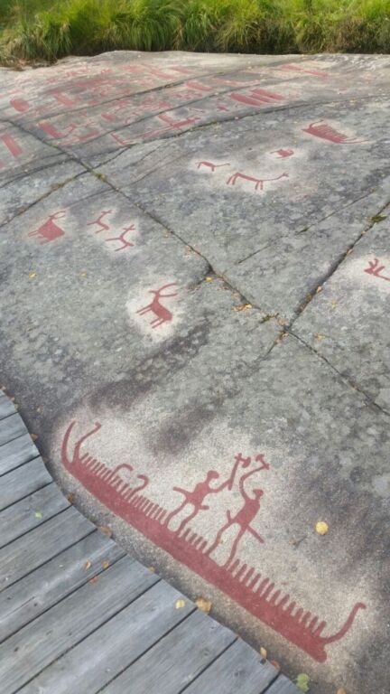 Ze vallen onder het Unesco’s Erfgoed en wat is het dan bijzonder dat de Zweden besloten hebben de tekeningen ‘gewoon’ met rode verf over te schilderen waardoor ze veel beter te zien zijn – een buitengewoon pragmatische oplossing die mij wel aanspreekt maar die niet door iedereen wordt gedeeld…