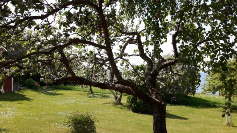 Alles, maar dan ook letterlijk alles bloeit! De seringen in lila, wit en paars, het fluitekruid, het koolzaad, maar vooral de fruitbomen. En wat ik niet wist was dat het langs het Vättern (het derde meer van Zweden) vol staat met appelboomgaarden – prachtig!