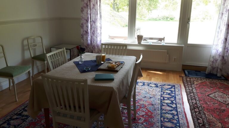 Om maar met het laatste te beginnen: wat een geweldige plek, wat een huis met af en toe bijzondere meubels! Je bent echt met je neus in de (Zweedse) boter gevallen 😀 Wat een bizarre situatie belandde je in toen je er aankwam! Je hebt echt een mooie reis ernaartoe gehad, prachtig als ik je foto’s zie. Ik krijg acuut heimwee! Ben je vanaf Jönköping naar het noorden gereden langs het Vättern, over Gränna?