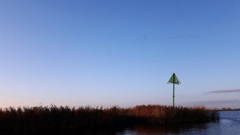 Tien minuten later zat ik in de auto richting het Sneekermeer en drie kwartier later voeren we onder een strakblauwe lucht langs prachtige oevers vol kleuren, ganzen, lege steigers, hier en daar wat zeilbootjes en heel veel zon!
