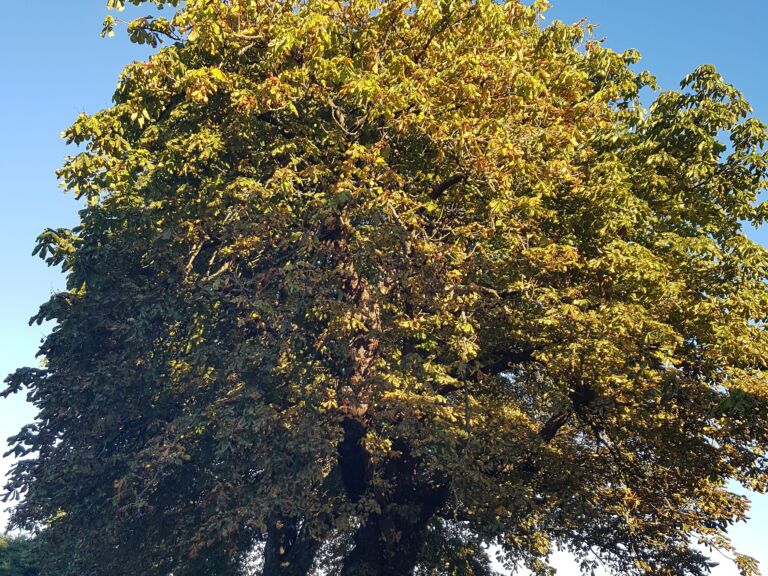 De majestueuze kastanje waar ik op uit kijk zag er anders dan anders uit.