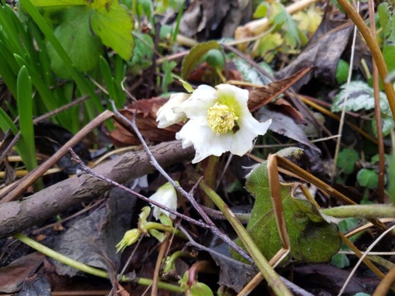 de helleborus heeft zijn eerste bloemen en