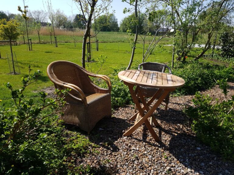 Natuurlijk mag ik helemaal niet mopperen want ook zonder fiets ben ik iedere dag buiten en geniet ik ongelooflijk van mijn tuin. Mijn tuin met een echte boomgaard! Het was heel spannend hoe de fruitbomen de winter zouden doorkomen maar ze hebben het alle zes gered.