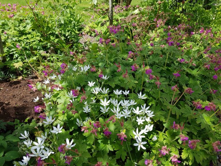 De tuin is een feest van herkenning, er zijn oude bekenden die het opeens enorm naar hun zin hebben, het zevenblad is bijna onder controle dankzij de geranium macrorrhizum (tot verbazing van de tuinmannen die er eerst niet aan wilden), mijn Chinese kleindochter leert de namen van alle bloemen en is heel trots dat ze nu ‘lievevrouwenbedstro’, ‘vogelmelk’ en ‘vergeetmenietje’ kan zeggen (!) en ik kon het niet laten om langs de weg nieuwe plantjes te kopen!