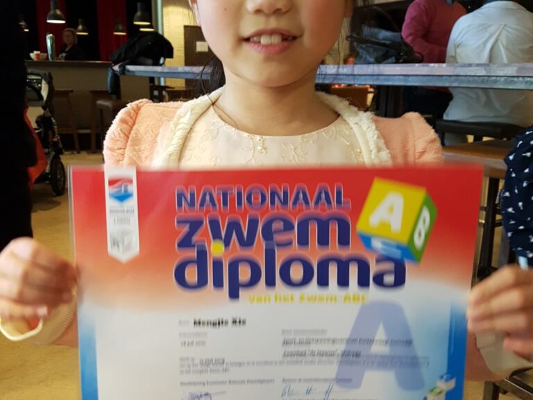 Maar gelukkig ging alles goed en haalde ze een week geleden haar A-diploma! In het grote koude zwembad in Wolvega, een half uur rijden. En om dat te kunnen moesten we daar drie keer oefenen en proefzwemmen! Wat heb ik inmiddels een bewondering voor al die ouders met jonge kinderen…