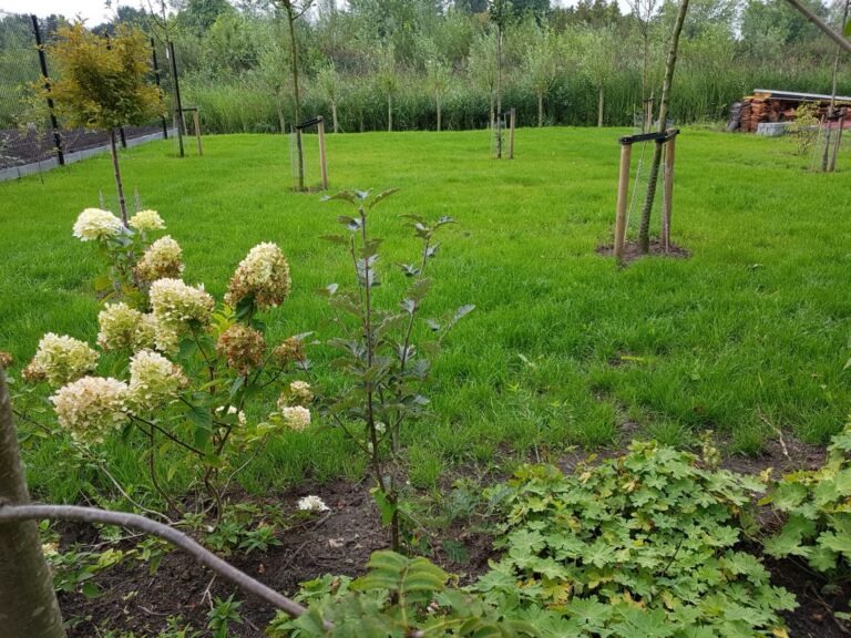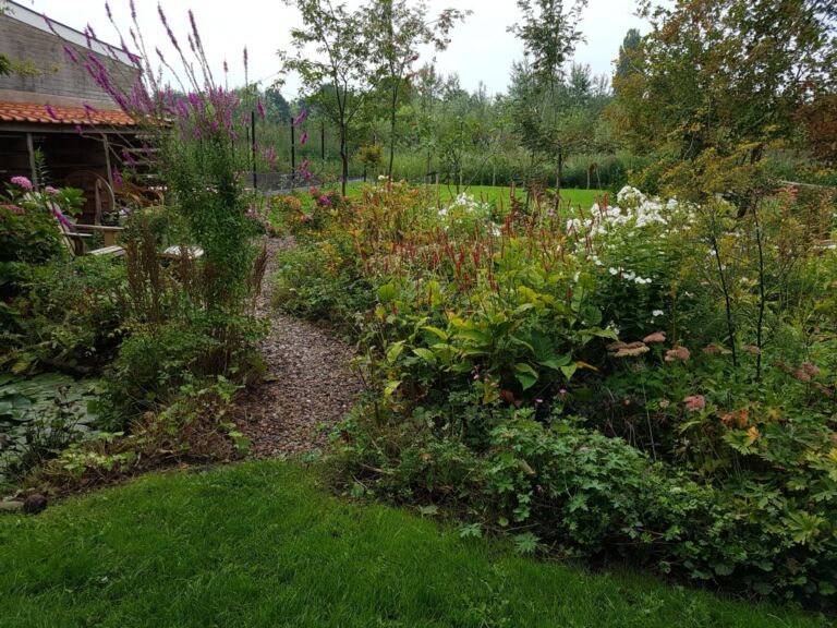 Gelukkig heb ik een geweldige tuinman. Hij komt met zijn mannen al 25 jaar. Eerst één keer p/j om te snoeien en inmiddels een keer per week om te maaien. Ze weten precies wat ik wil en ik zit overal met mijn neus bovenop – gelukkig moeten ze daarom lachen! Ik loop inmiddels heel slecht, heb een traplift en kan weinig meer zelf maar ik geniet nog steeds enorm van ‘mijn landgoed’!