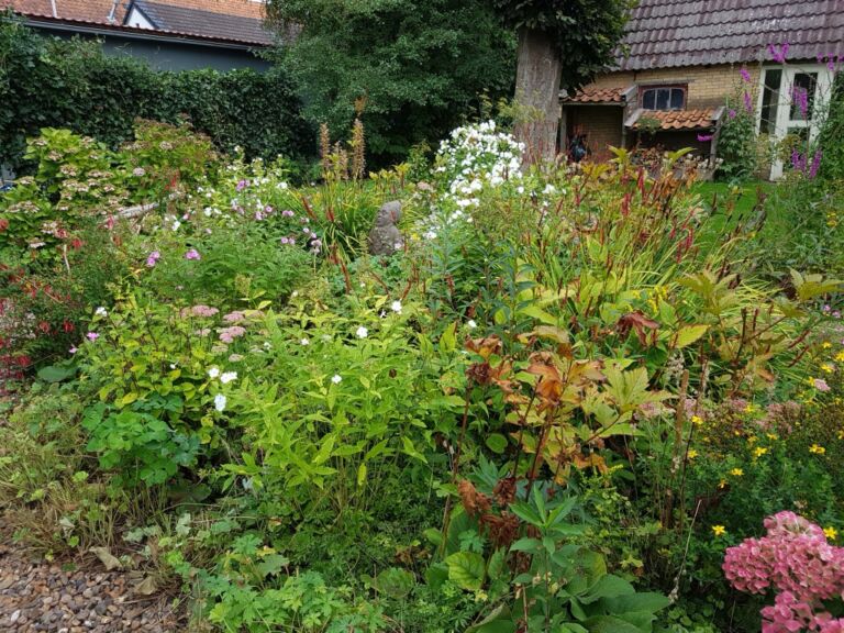 En wat een heerlijke tuin ! Ik begrijp uit de verhalen dat je nogal wat problemen hebt gehad met de knieën. Is het werken in de tuin geen probleem ? Ik kan sinds een paar jaar wat minder zwaar werk in de tuin doen door rug en heupklachten en dat vind ik erg lastig. Ben niet gewend om het aan anderen over te laten.