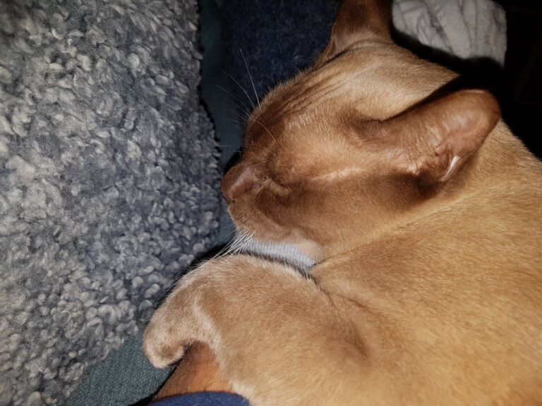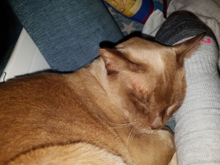Wat knapt Pepijn ervan op – eindelijk weer een poezenlijf om tegen aan te liggen.