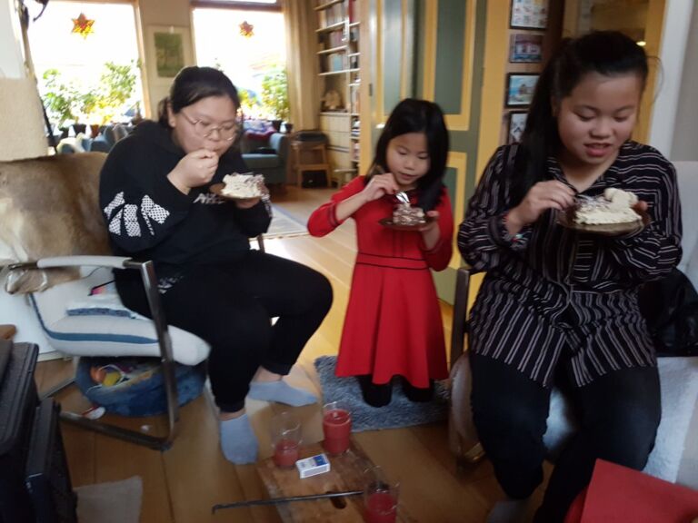 En daar tussen in nodigden ze me uit voor de viering van het Chinees Nieuwjaar en aten we met z’n vieren heerlijk ‘echt Chinees eten zoals mama het maakte’ in een wereldrestaurant. Wat hebben ze genoten, wat zorgden ze goed voor me en wat genoot ik van hun blijheid!
