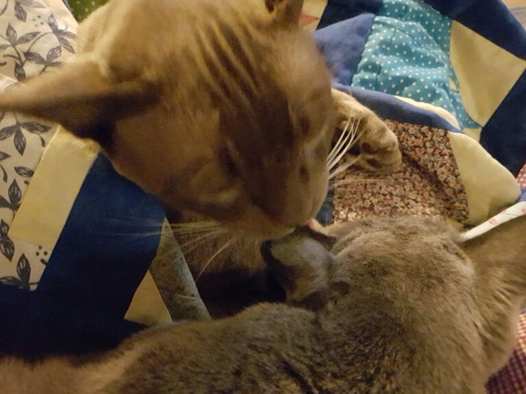 Aanvakelijk leek dat ook zo. Hij was weer alert, rommelde lekker door het huis en de tuin en hij begon weer wat beter te eten al hield dat niet over. Maar daar maakte ik me niet zo ongerust over. De andere twee aten ook weinig en ze dronken alledrie prima. Pepijn en hij zijn onafscheidelijk, ze liggen echt altijd samen en dat was ook nu gewoon het geval.