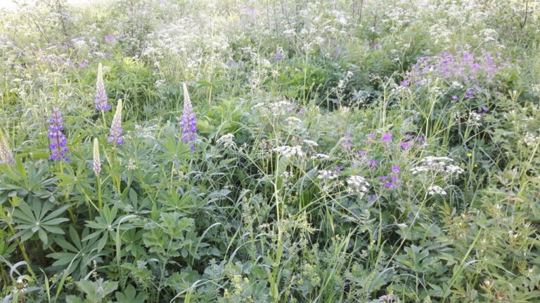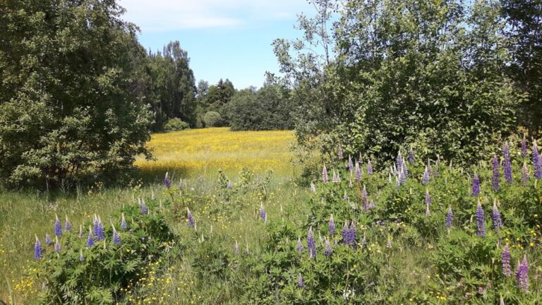 Het is een zomer zoals ik die nog nóóit eind mei – begin juni heb meegemaakt terwijl ik hier toch voor de negende keer in deze periode ben. Alles, maar dan ook letterlijk alles bloeit! En niet netjes na elkaar zoals gebruikelijk maar gewoon alles tegelijk. De paardenbloemen, de lupines, de boterbloemen, het fluitekruid, de seringen, de fruitbomen, de paarse ooievaarsbekken (velden vol zelfs) – Zweden is één groot boeket! En dat in combinatie met een strakblauwe lucht, blauwe meren en blauwe rivieren.