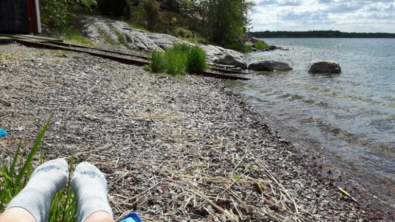 Maar hét hoogtepunt was het gevoel dat ik had toen ik eindelijk over de drempel durfde en aan de Zweedse zee probeerde een paar aquarelletjes te maken. Het was heel bijzonder om dat daar te mogen ervaren, helemaal alleen op mijn strandje. Het was een openbaring om te spelen met het licht en de kleuren en ze te zien veranderen.